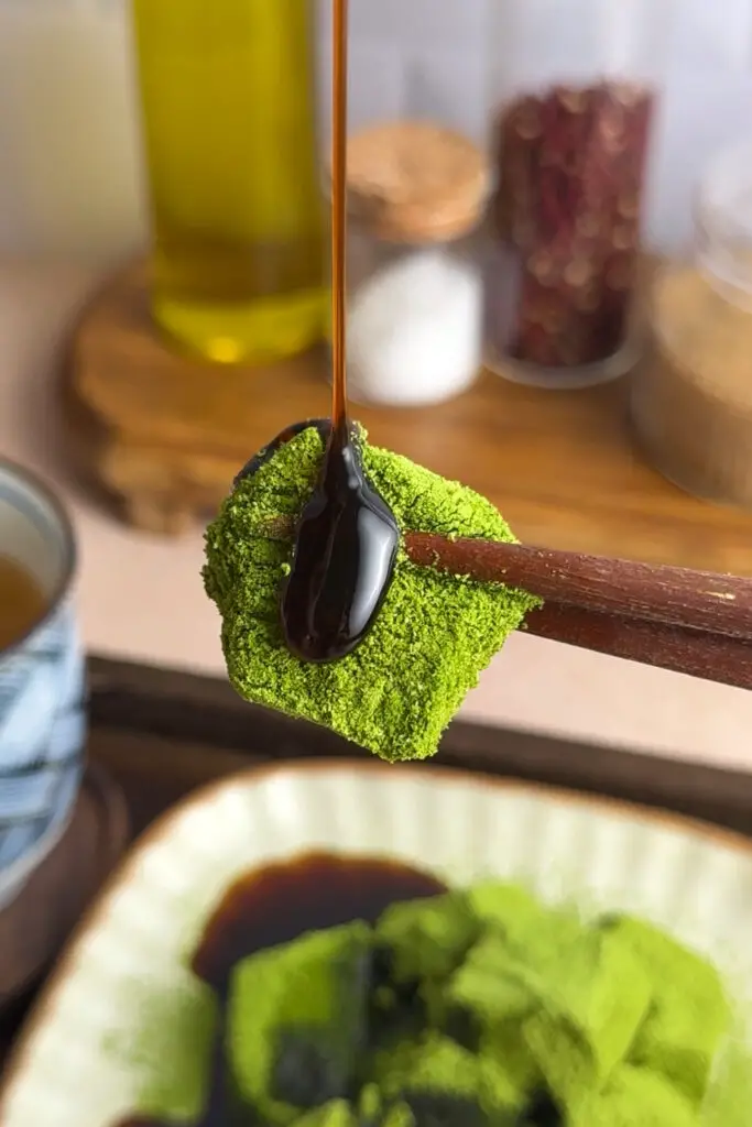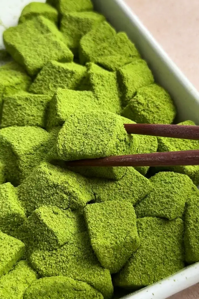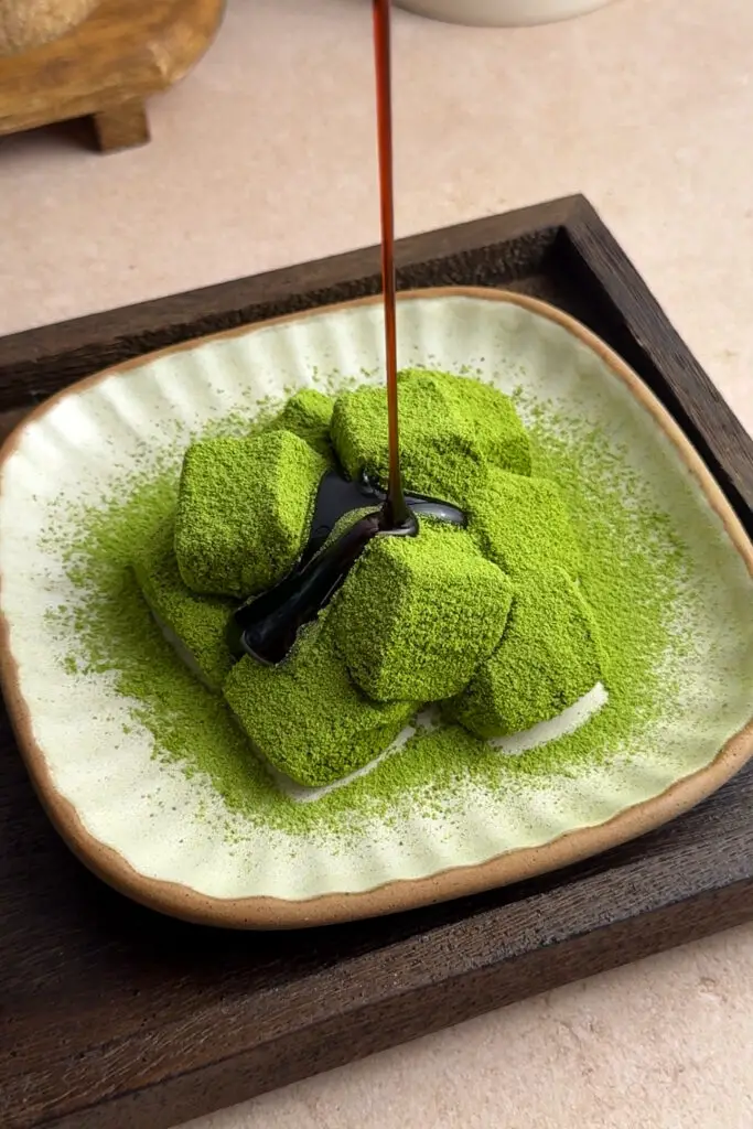 - Matcha-free version – Use only kinako and sugar for a classic golden warabi mochi. Hojicha powder would also be delicious.