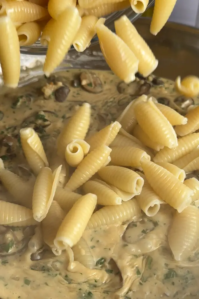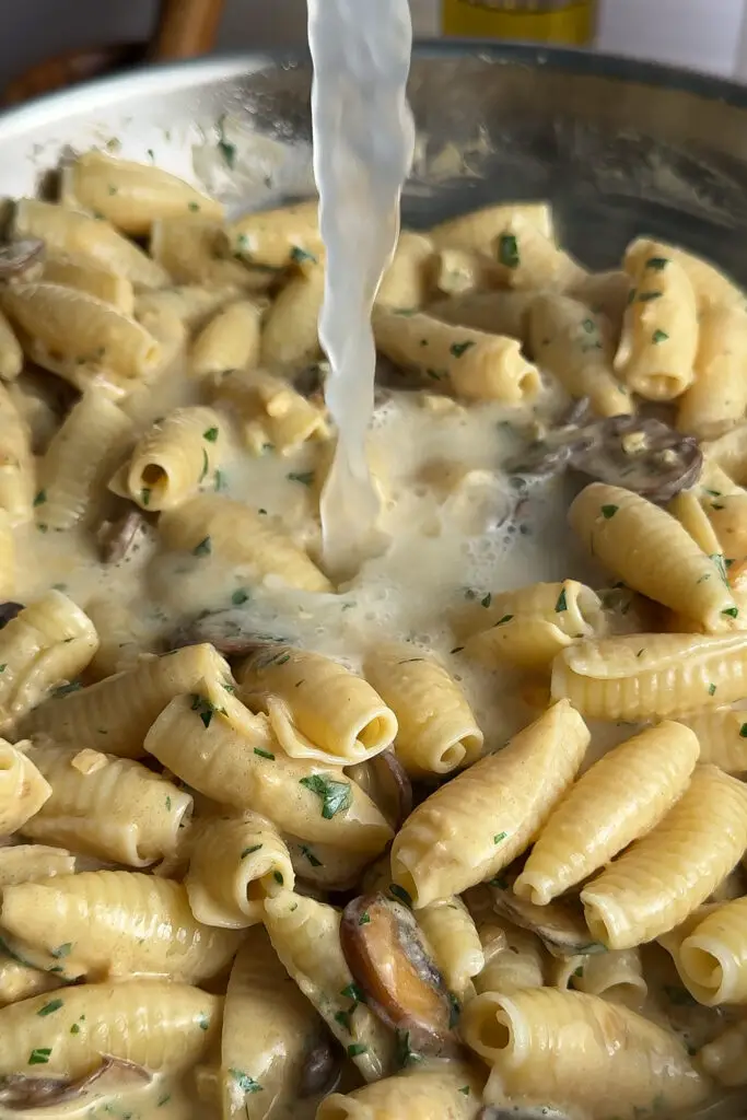 Combine – Add the cooked pasta to the pan and toss to coat evenly. Drizzle in a splash of pasta water to achieve your desired consistency.