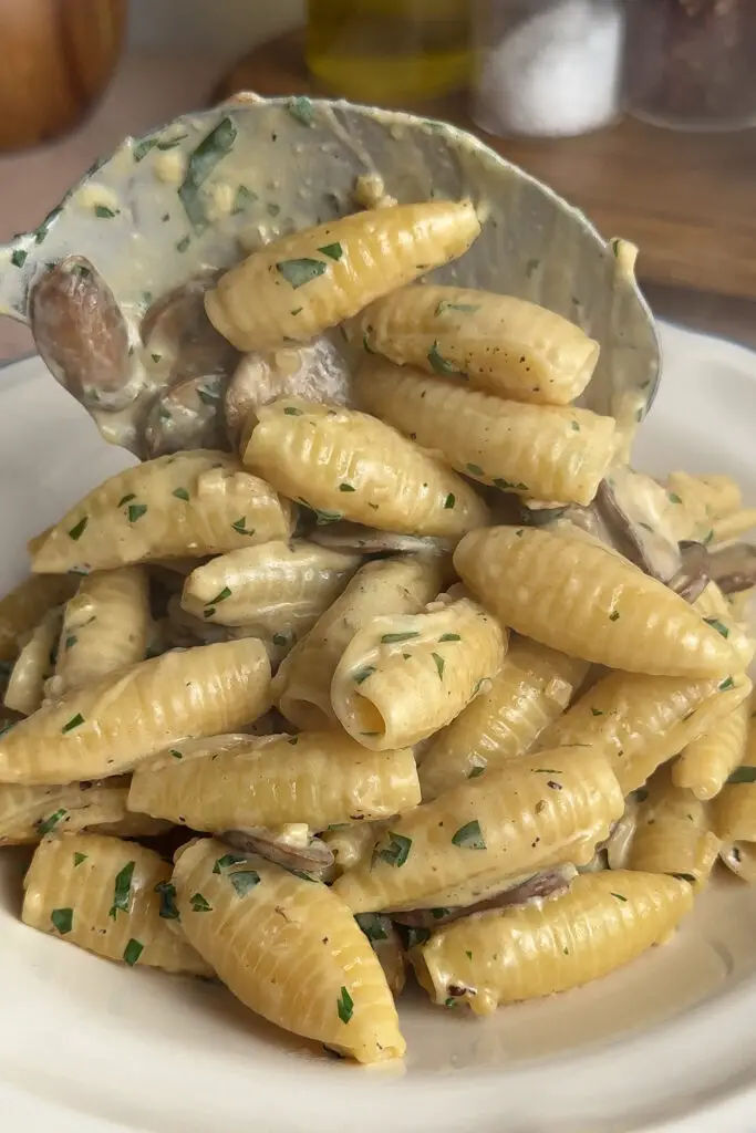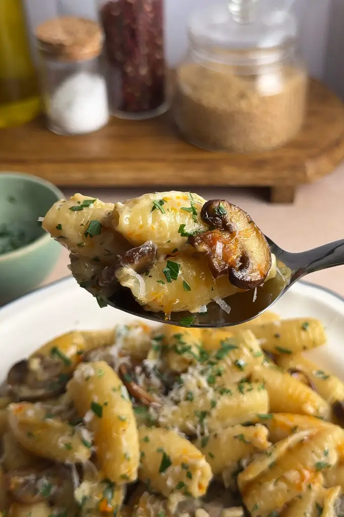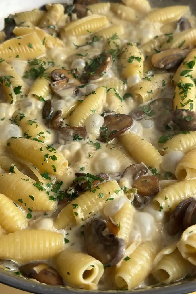Store leftover creamy mushroom miso pasta in an airtight container in the fridge for up to 3 days. Reheat gently on the stove with a splash of milk, cream, or water to bring back the silky texture. Avoid freezing - the cream sauce may separate. If you're lazy you can also microwave it!