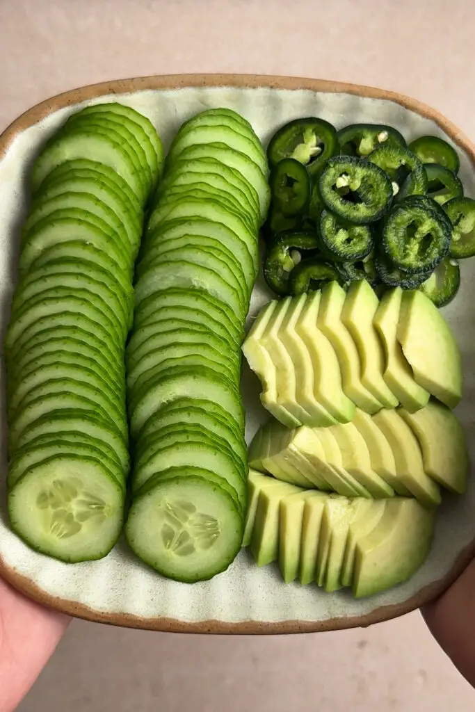 - California Roll Bake – Use only imitation crab with extra cucumber and avocado.
