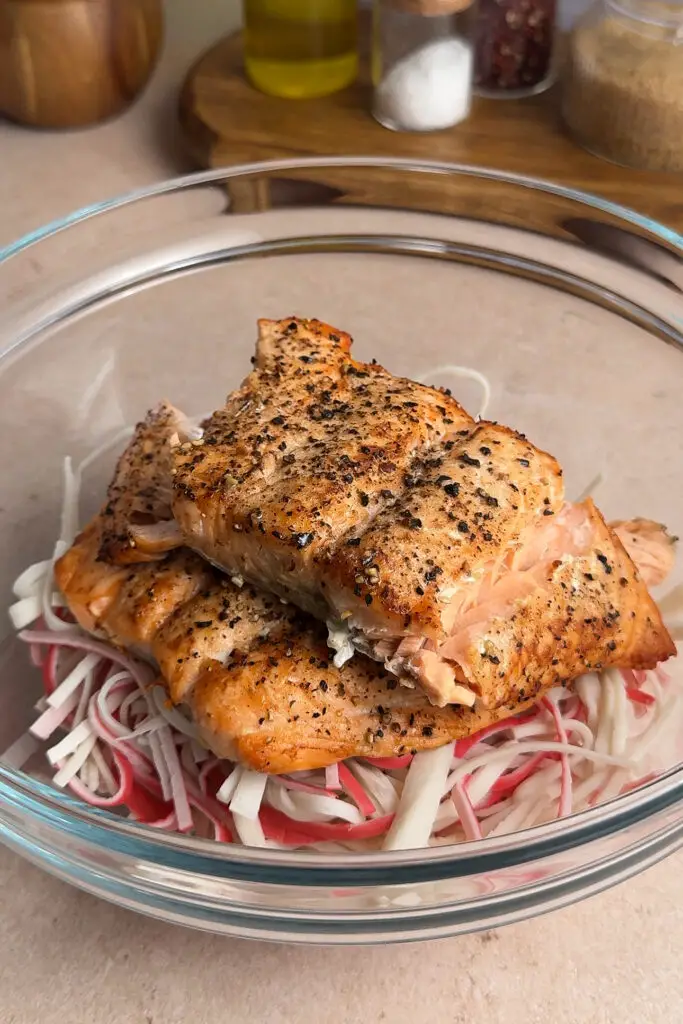 - Salmon → Use canned salmon, tuna, or cooked shrimp.